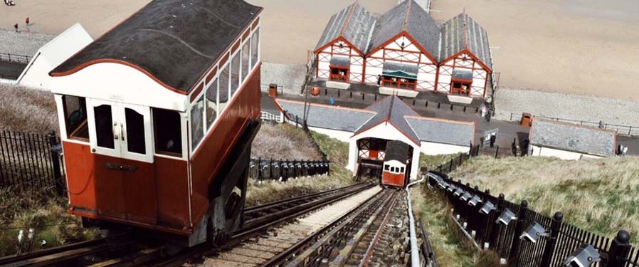 Saltburn's funicular was constructed between 1883 and 1884 to replace a vertical cliff hoist, which was used to transport passengers up and down the steep north-facing cliff between the town and the pier. It improved access for tourists to the seafront and beach.